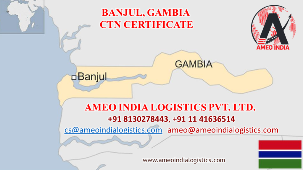 Ameo India Logistics All sea shipments to The Gambia (Also including those ones in transit) will require a CTN Certificate starting from May 15, 2023. The new rule applies to all kind of goods that are exported to The Gambia by Sea.